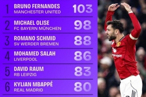 體育資訊12月31日訊 數(shù)據(jù)網(wǎng)站Squawka盤點(diǎn)了2025年五大聯(lián)賽創(chuàng)造機(jī)會(huì)榜,其中B費(fèi)居首,具體如下:
