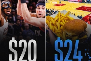 根據(jù)票務(wù)網(wǎng)站信息,本場(chǎng)比賽最低門票價(jià)格為20美元。而在球館內(nèi),你點(diǎn)一個(gè)漢堡薯?xiàng)l組合都需要24美元。