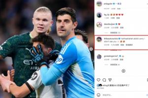 這條社媒引來居萊爾眾多皇馬隊友的評論留言,而該名場面的主角之一庫爾圖瓦也現(xiàn)身評論區(qū),評論道:“哈哈哈哈哈哈哈哈,抱歉我真沒看見你????????(意為居萊爾相比之下個頭太小了)”。