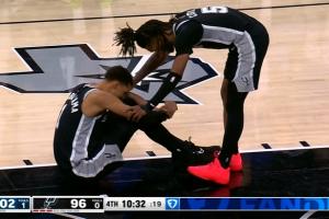 GIF-文班搶籃板落地受傷了 像是過度伸展啊……