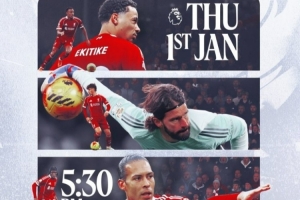 海報中范戴克、?;倏?、赫拉芬貝赫、阿利松、弗林蓬等球員出鏡。利物浦官推配文寫道:“在安菲爾德球場開啟新的一年!”