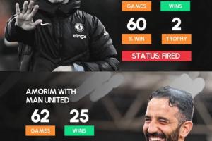阿莫林執(zhí)教曼聯(lián):62場(chǎng)25勝,勝率40%,0座冠軍,安全