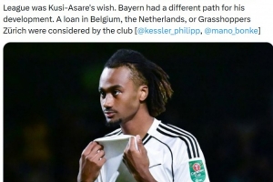體育資訊1月2日訊 據(jù)記者Philipp Kessler報道,富勒姆考慮在本月提前終止拜仁18歲前鋒庫西·阿薩雷的租借合同。