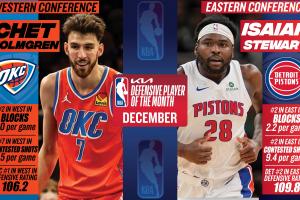 體育資訊01月03日訊 NBA官方宣布,活塞斯圖爾特與雷霆霍姆格倫分別當(dāng)選12月東西部月最佳防守球員。