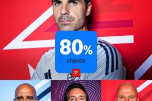 體育資訊01月03日訊 英超賽季已經(jīng)過(guò)半,數(shù)據(jù)機(jī)構(gòu)OPTA計(jì)算了最新的英超奪冠概率,阿森納以80%的奪冠概率遙遙領(lǐng)先,曼城奪冠概率為16.7%,阿斯頓維拉4.2%,利物浦0.1%。