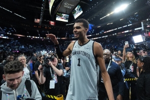 楊毅:馬刺里邊有四五,外邊有一二,內(nèi)線和后衛(wèi)都不缺,馬刺就缺三,缺鋒線。字母會影響文班成長,別把我們馬刺往字母和濃眉那引,這是第一,現(xiàn)在就不要梭哈他倆,不要他們倆。第二,為什么說馬刺有這個條件?有的球隊沒這條件,甚至說我梭完之后我就這一梭子,我梭完之后萬一不行,完了。馬刺的特殊之處,馬刺這子彈多啊,籌碼多啊,馬刺好幾梭子,梭完一梭子不行,咱還有一梭子,是吧?馬刺我們剛才說了他有這么多可以換的后衛(wèi),卡斯爾和迪倫·哈珀,我認為這倆人你可以說是非賣品,但也可以不是非賣品。