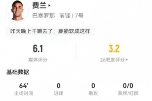 體育資訊1月4日訊 巴薩在本輪西甲對陣西班牙人,費蘭本場數(shù)據(jù)如下:
