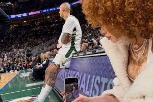 庫茲馬女友、知名模特Winnie Harlow也出現(xiàn)在場邊觀戰(zhàn),還時(shí)不時(shí)拿出手機(jī)給場上的庫茲馬拍照。她在賽后更新社媒,曬出了觀賽的照片,并寫道:“在戀愛里上頭了?!?/p>