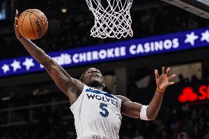 此役森林狼球星愛德華茲表現(xiàn)不俗,出場38分鐘19投10中,三分8中2、罰球14中11砍全場最高33分外加3籃板5助攻1搶斷,正負值-2。