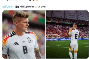 德國(guó)隊(duì)官方社媒曬出克羅斯效力期間的照片,配文:“生日快樂(lè),托尼!”
