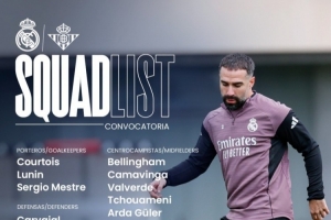 體育資訊1月4日訊 北京時(shí)間1月4日23:15,西甲第18輪,皇馬對(duì)陣貝蒂斯,皇馬公布本場(chǎng)名單,卡瓦哈爾回歸,姆巴佩傷缺,馬斯坦托諾在列。