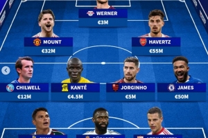 前腰:芒特(曼聯(lián),3200萬)、 哈弗茨(阿森納,5500萬)