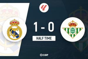 上半場補時2分鐘,皇馬1-0貝蒂斯。