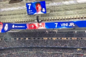 體育資訊1月4日訊 皇家馬德里對(duì)陣皇家貝蒂斯的比賽正在進(jìn)行當(dāng)中,賽前伯納烏播報(bào)球員名字時(shí),球迷們給予維尼修斯歡呼。