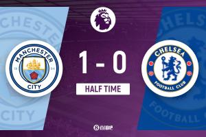 半場(chǎng)結(jié)束,曼城暫1-0切爾西。