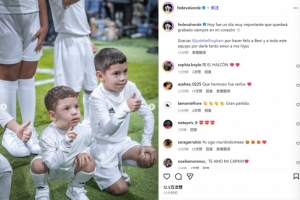 巴爾韋德也在賽后通過社媒曬出自己的兩個兒子出任球童的照片,貝林厄姆在賽前儀式環(huán)節(jié)代為照顧他的大兒子Beni。