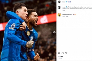 詹姆斯曬出自己和進(jìn)球功臣恩佐的慶祝照,并配文:“這幾天很艱難,但我們團(tuán)結(jié)一心,堅(jiān)持了下來(lái)。這是征途中的一處難關(guān)。一路平安,藍(lán)軍球迷們,你們今晚的表現(xiàn)太棒了!”