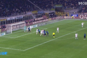 比賽第74分鐘,國(guó)米右側(cè)角球機(jī)會(huì),圖拉姆門(mén)前用肩膀?qū)⑶蜃策M(jìn)球門(mén)!