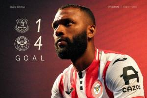 體育資訊01月05日訊 英超第20輪,布倫特福德4-2客勝埃弗頓,隊(duì)內(nèi)前鋒伊戈?duì)枴さ賮喐晟涎菝弊討蚍?,是球?duì)取勝的最大功臣。