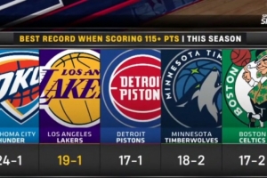 Top5依次是:雷霆、湖人、活塞、森林狼、凱爾特人