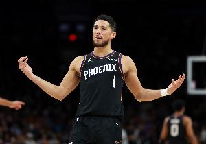 布克本場比賽出戰(zhàn)38分鐘,投籃11中5,三分4中1,罰球15中13,得到24分6籃板9助攻。