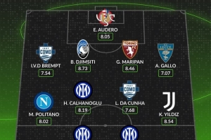 中場:馬泰奧·波利塔諾(那不勒斯,8.02分)、哈坎·恰爾汗奧盧(國際米蘭,8.19分)、盧卡斯·達(dá)·庫尼亞(科莫,7.68分)、凱南·伊爾迪茲(尤文圖斯,8.54分)