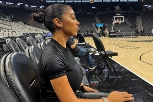 體育資訊1月6日訊 索漢的女友Mya Mills更新社媒,曬出了她觀看馬刺上一場對陣開拓者的比賽的動態(tài)。