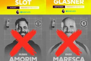 本賽季英超已頒發(fā)四座月度最佳主教練的獎杯,其中11月得主馬雷斯卡于元旦當天下課,而10月最佳得主阿莫林于1月5日下課。