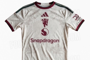 根據(jù)footyheadline的諜照,曼聯(lián)2026-27賽季第三球衣以米白色為主色調(diào),搭配深綠色和酒紅色,這件球衣采用了蘭開夏玫瑰的設(shè)計(jì)元素,點(diǎn)綴有四朵蘭開夏玫瑰。