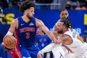 活塞暴打尼克斯31分:坎寧安兩節(jié)半29分9助攻提前解決比賽,全場29分13助攻2封蓋——布倫森21投25分0助攻。