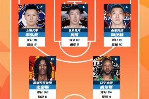 2025-2026賽季CBA聯(lián)賽常規(guī)賽第11輪結(jié)束較量,來自上海久事大鯊魚的李弘權(quán) ,北京首鋼的周琦,山東高速的陶漢林,深圳新世紀(jì)烈豹的史密斯和遼寧的威爾斯入選CBA聯(lián)賽常規(guī)賽第11輪最佳陣容!