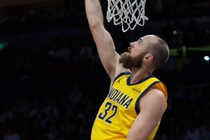 本場比賽,步行者中鋒赫夫發(fā)揮不錯,進(jìn)攻端里突外投很高效,但最后時刻不在場上。