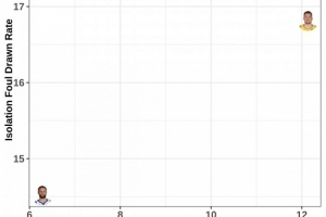 縱坐標(biāo):單打造犯規(guī)率。庫里約14%,亞歷山大約18%,東契奇約17%