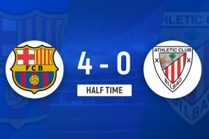 體育資訊1月8日訊 北京時(shí)間1月8日凌晨3時(shí)整,西班牙超級(jí)杯半決賽在吉達(dá)阿卜杜拉國王體育場(chǎng)展開角逐,巴塞羅那對(duì)陣畢爾巴鄂競(jìng)技。上半場(chǎng)費(fèi)蘭首開記錄,費(fèi)爾明2傳1射,拉菲尼亞和巴德吉均獻(xiàn)傳射,西蒙送禮,巴塞羅那暫時(shí)4-0領(lǐng)先畢爾巴鄂競(jìng)技。