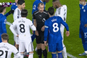 體育資訊01月08日訊 英超第21輪,富勒姆主場(chǎng)迎戰(zhàn)切爾西,比賽第22分鐘,庫庫雷利亞放倒單刀的威爾遜,被直紅罰下。隨后,恩佐、托辛、帕爾默因?yàn)榕c裁判爭(zhēng)吵被出示黃牌,富勒姆教練也因?yàn)檎J(rèn)為應(yīng)該判罰點(diǎn)球抗議,吃到一張黃牌。