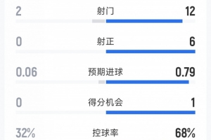 體育資訊1月8日訊 在本輪英超,曼聯(lián)半場0-1落后于伯恩利,以下為雙方半場數(shù)據(jù)對比: