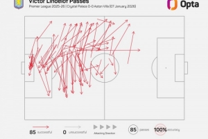 據(jù)Opta統(tǒng)計(jì),林德洛夫本場(chǎng)比賽傳球85次,成功率100%。2022年2月26日拉波爾特(110次傳球全部成功)之后,林德洛夫是英超單場(chǎng)傳球次數(shù)最多且成功率100%的球員。