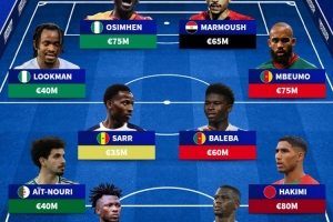 中場(chǎng)/邊鋒:薩爾(塞內(nèi)加爾,3500萬(wàn)歐)、巴萊巴(喀麥隆,6000萬(wàn)歐)、盧克曼(尼日利亞,4000萬(wàn)歐)、姆伯莫(喀麥隆,7500萬(wàn)歐)