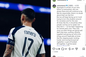 體育資訊1月8日訊 英超第21輪比賽,熱刺客場2-3不敵伯恩茅斯,熱刺后衛(wèi)羅梅羅社媒發(fā)文,向球迷表達(dá)歉意。