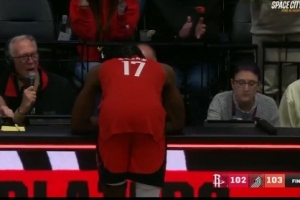 在裁判判定超時后,伊森非常沮喪,趴在技術(shù)臺很久沒緩過來,他的失望和開拓者主場的歡呼形成了鮮明的對比。