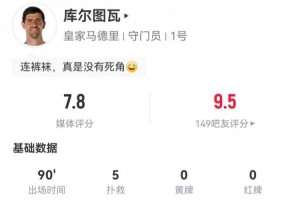 體育資訊1月9日訊 皇馬在本輪西超杯對陣馬競,庫爾圖瓦本場數(shù)據(jù)如下: