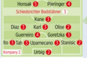 體育資訊12月22日訊 德甲第15輪比賽,拜仁客場4-0擊敗海登海姆,德國媒體《圖片報》對球員進行評分,烏爾比希、奧利塞、斯坦尼西奇2分最高。