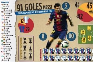 2012年12月22日,梅西在巴薩3-1巴拉多利德的比賽中破門(mén),打進(jìn)自己在2012年的第91球,以69場(chǎng)91球的數(shù)據(jù)超過(guò)蓋德-穆勒6球,刷新足壇歷史自然年進(jìn)球紀(jì)錄。在那年的比賽中,梅西還送出了24次助攻。