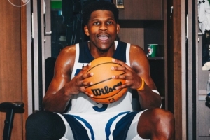 賽后,森林狼官方曬圖,愛德華茲拿到本場比賽的用球。