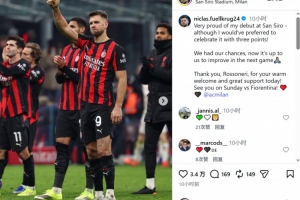 菲爾克魯格社媒寫(xiě)道:“為我在圣西羅的首秀感到非常自豪,盡管我更希望能以一場(chǎng)勝利來(lái)慶祝!