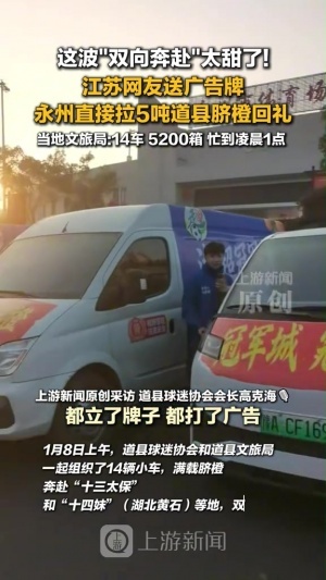 這波“雙向奔赴”太甜了!江蘇網(wǎng)友送廣告牌,永州直接拉5噸道縣臍橙回禮,當(dāng)?shù)匚穆镁?14車,5200箱,忙到凌晨1點。
