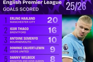 體育資訊1月10日訊 數(shù)據(jù)機構(gòu)squawka統(tǒng)計了本賽季英超進(jìn)球情況,哈蘭德壓伊戈爾·蒂亞戈居首。