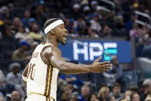 勇士球星巴特勒今天戰(zhàn)意十足,他狂搶4個前場板展現(xiàn)了自己的能量。