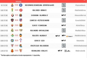 體育資訊1月10日訊 西甲官方公布了第22輪比賽的開球時間,2月1日4點埃爾切vs巴薩,2月1日21點皇馬vs巴列卡諾。