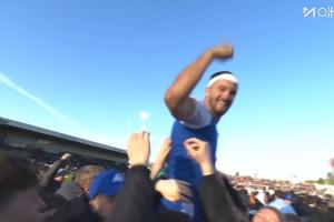 比賽結(jié)束后,麥克爾斯菲爾德球迷將球隊(duì)進(jìn)球功臣保羅·道森扛在肩上